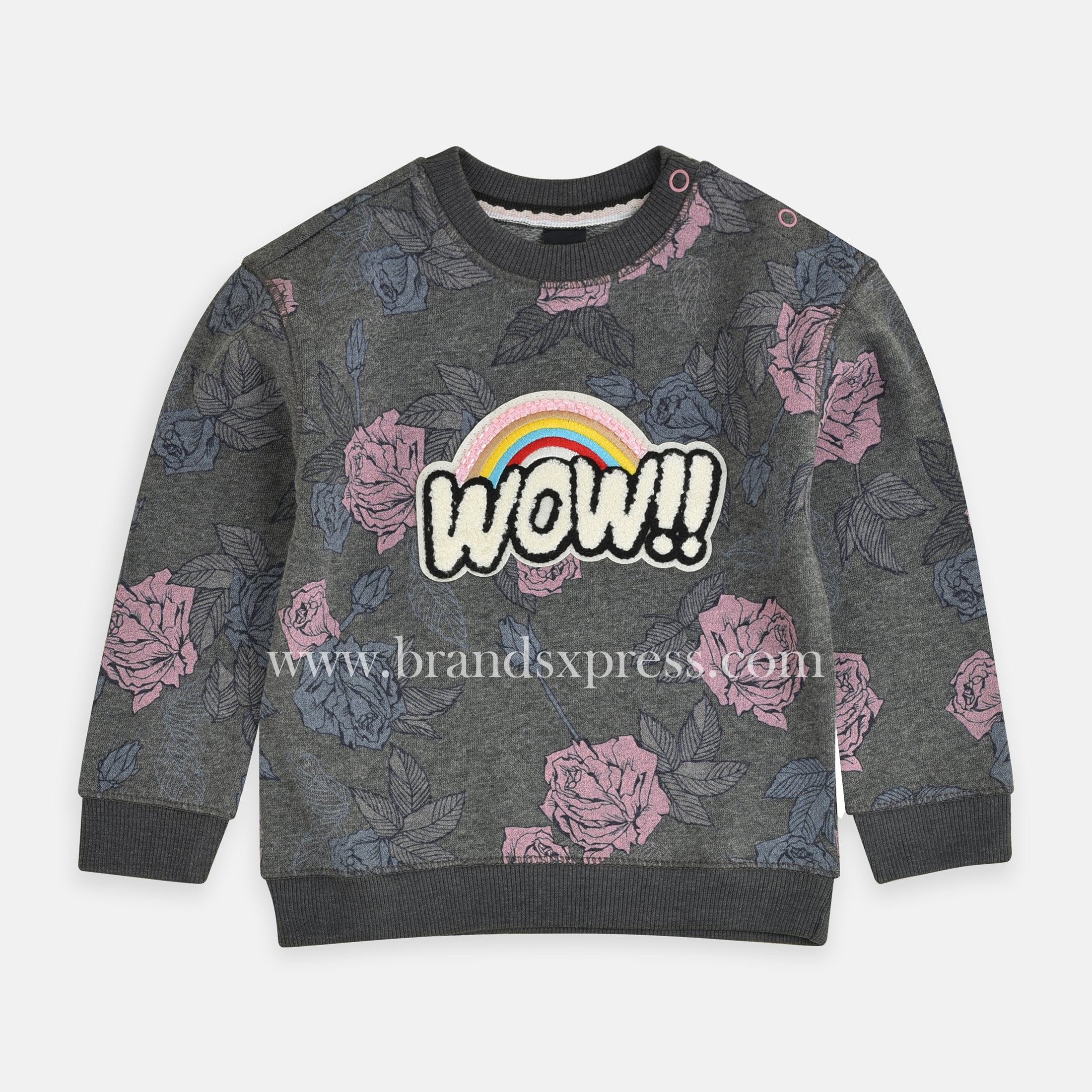 I&A Embraided WOW Print With Floral Dark Grey Sweatshirt 2636