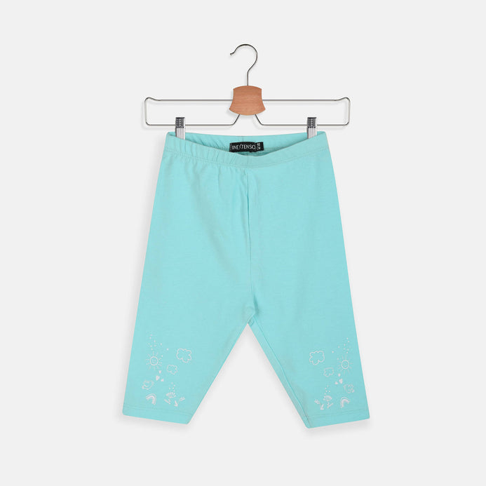 INEX Bottom Cloud Print Light Blue Capri Style Legging 2621