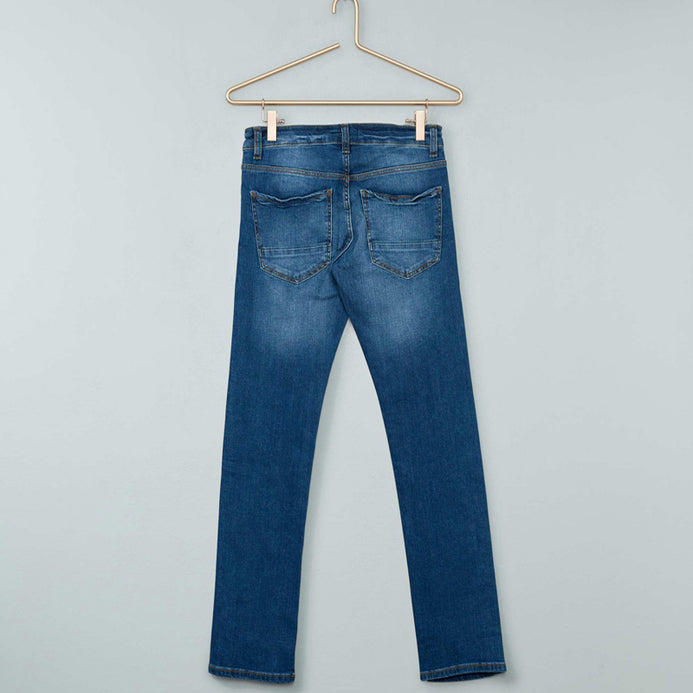 KB Men Medium Blue Worn Effect Slim Stretch Jeans
