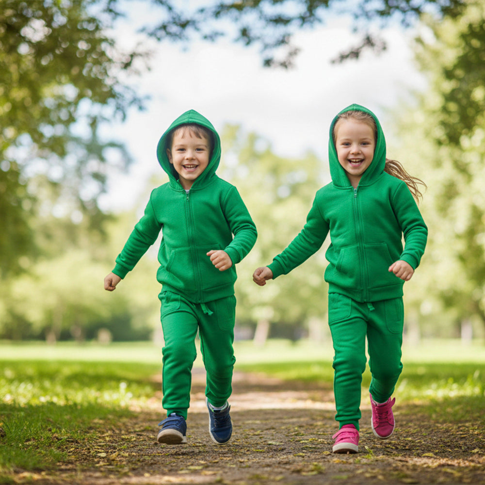 L&S Front pocket Plain Green Terry Zipper Hoodie Tracksuit 14684