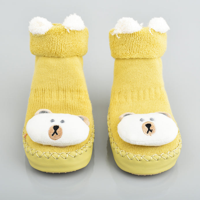 XB Cute Bear Face Mustard Socks Booties 2729