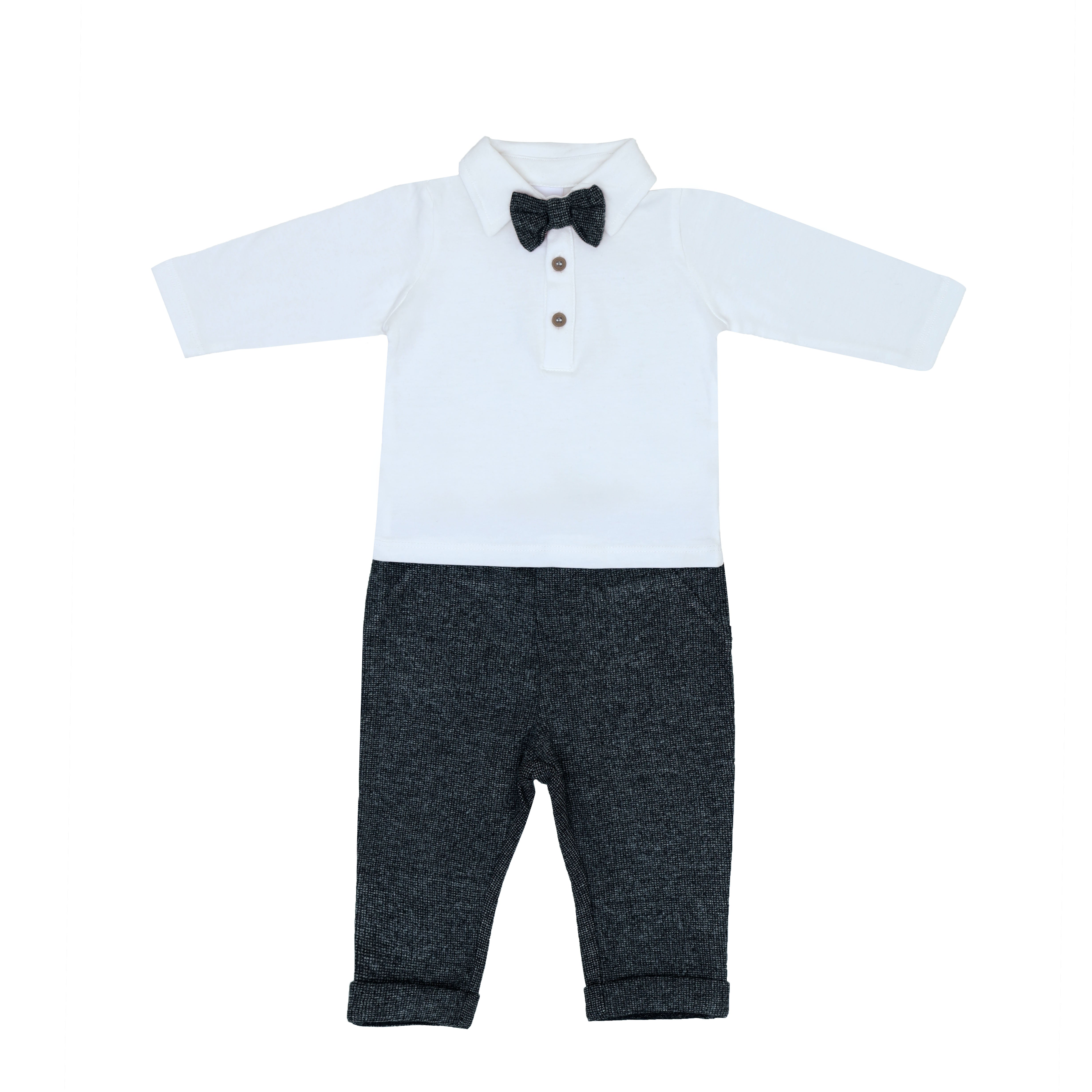 BB Fleece Grey Pant With White Shirt & Bow 3 Piece Set 13345