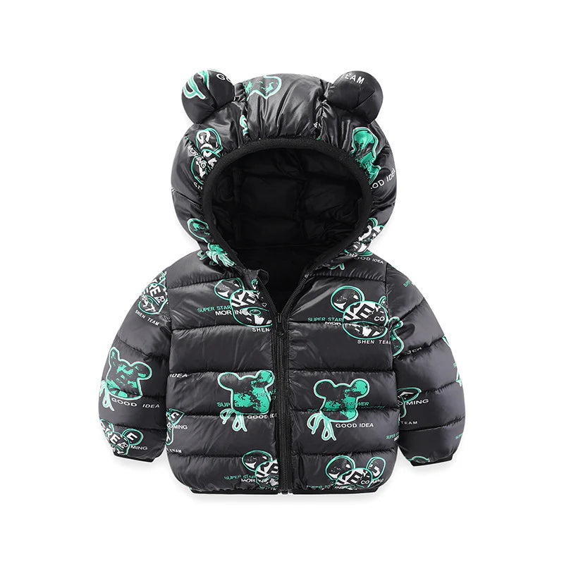 - CN Mochino Super Star Print Black Warm Puffer Jacket 13423