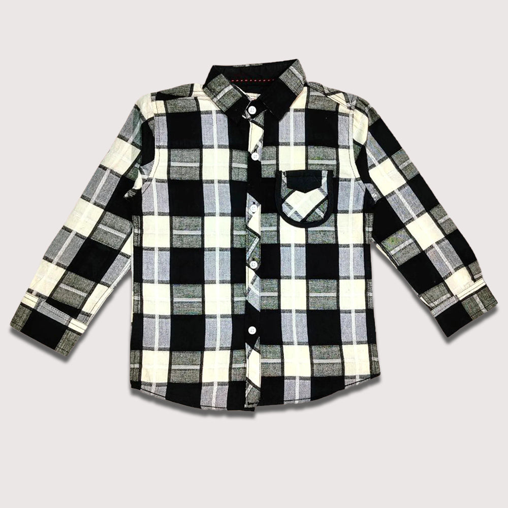 - HT Black & Grey Check Box Front Pocket Full Sleeves Shirt 14091