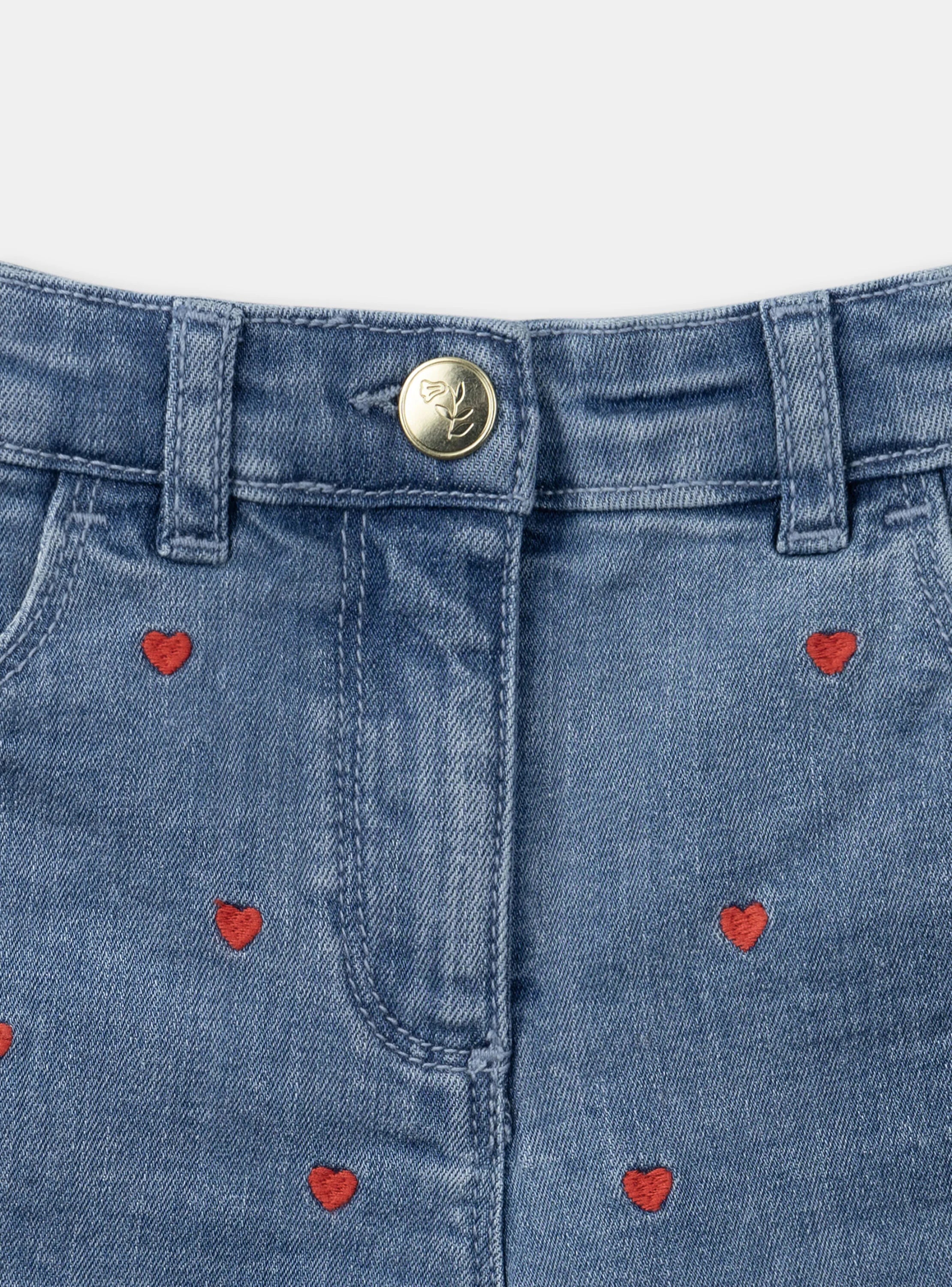 SM All Over Embroided Red Heart Blue Denim Shorts 13309
