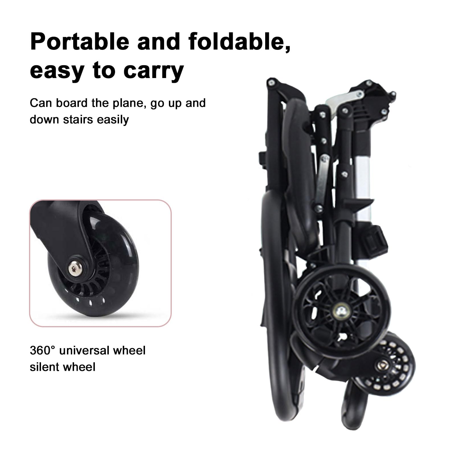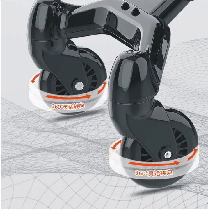 Smooth Ride: Shock-absorbing wheels and 360° swivel front wheels ensure a smooth glide on various surfaces.