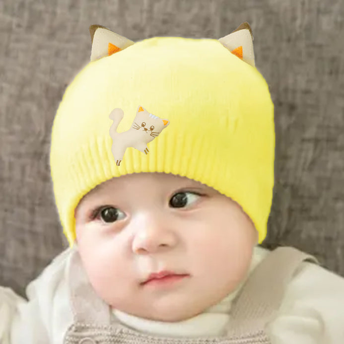 - Fashion Hats Cat Aplic Yellow Rabbit Fur Warm Cap 10588-A
