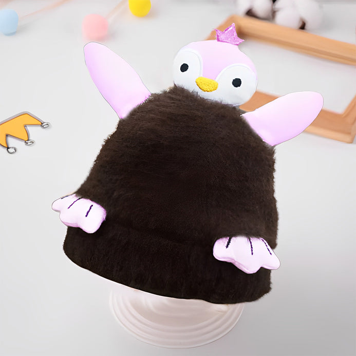- Fashion Hats Penguin Hat Aplic Dark Brown Rabbit Fur Warm Cap 10591-A
