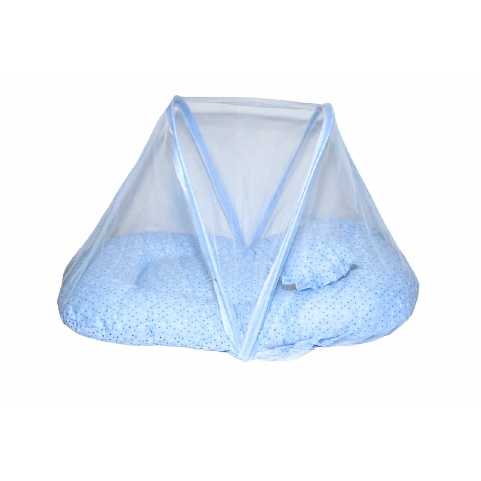 - New Born Blue Polka Dots Portable Soft Bed With Mosquito Net 10826