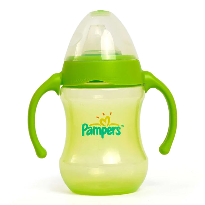 260 ml, 1 x Pcs. Pampers Spill-proof Baby Spout Cup consists of 2 elements: a container with handles and a silicone lid with a spout, it facilitates and enhances baby’s drinking skills by allowing a smooth transition from nipple to straw.