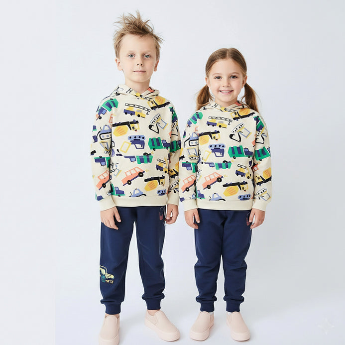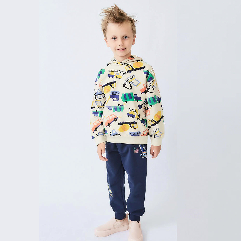 5.10.15 All Over Construction Elements Print kangroo Pocket Beige Terry Hoodie 14579