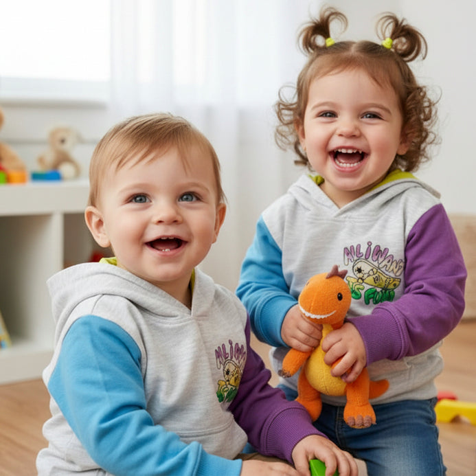 5.10.15 All Want Is Fun Kangroo Pocket Color Sleeves Light Fleece Grey Hoodie 14568