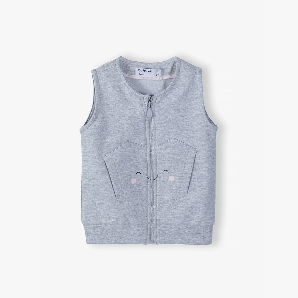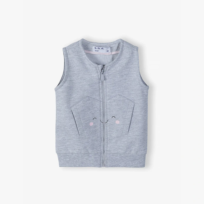 5.10.15 Cute Smile Face Pocket Grey Sleeveless Fleece Zipper 13474