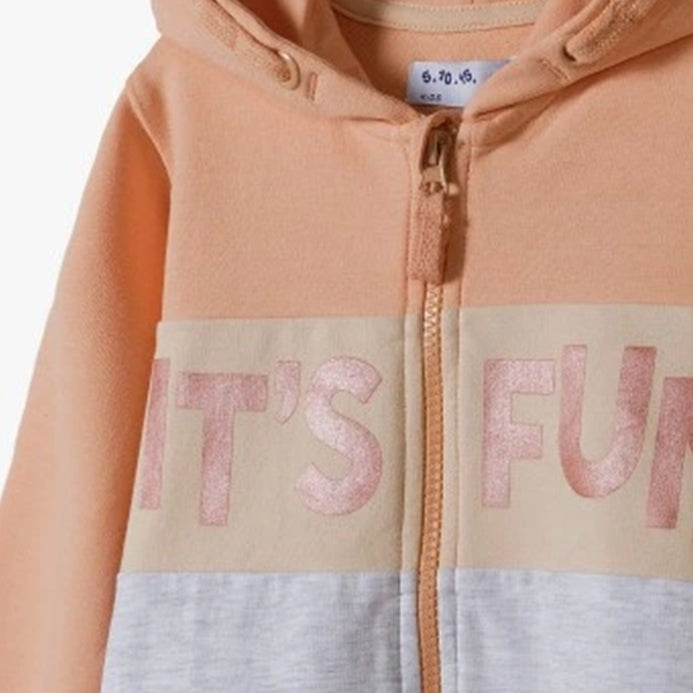 5.10.15 Its Fun Color Block Orange Terry Zipper Hoodie 12362