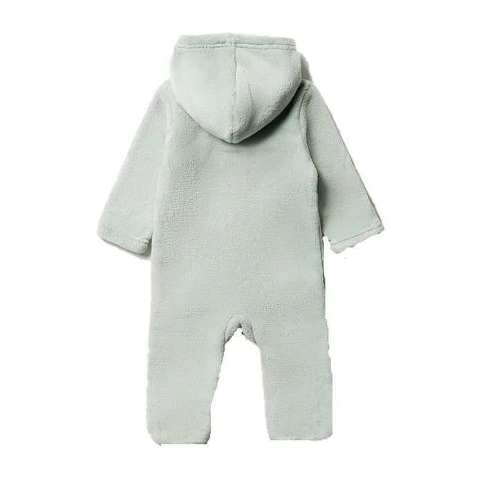 AKMS Applic Giraffe Warm Fluffy Furr Fleece Pale Green Romper 13333