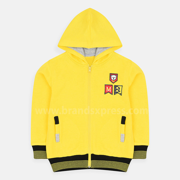B.X Bear Embroidered Badge Yellow Zipper Hoodie 8263