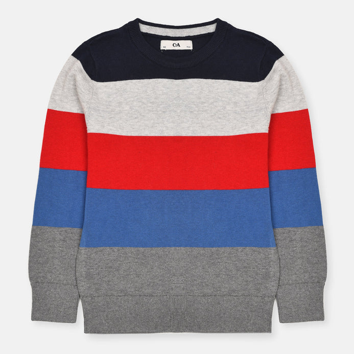 CA Big Stripes Blue Grey & Red Sweater 11965