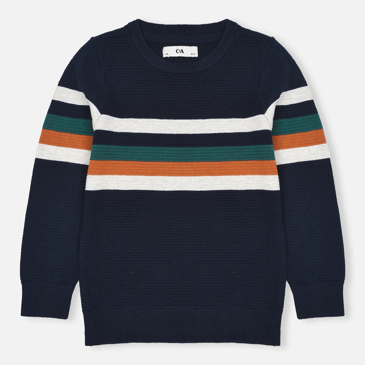 CA Chest Color Stripes Navy Blue Sweater 11957