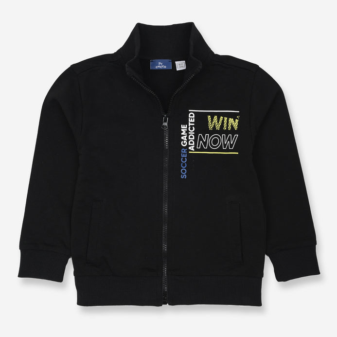 CHO Win Now Print Mock Neck Black Terry Zipper 10187