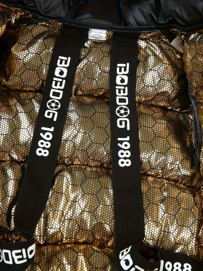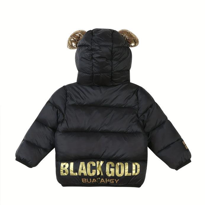 CN Black Gold Style Warm Black Puffer Jacket 13415