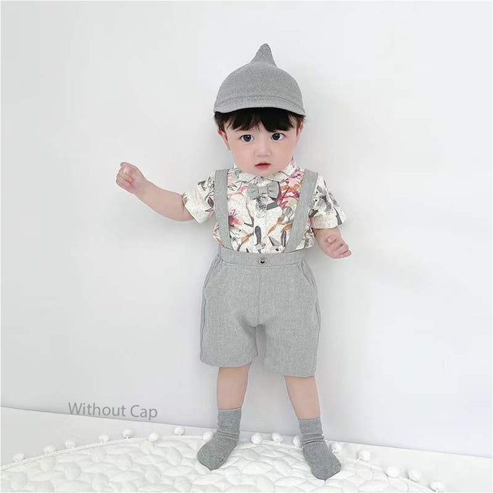 CN Digital Floral Print Romper With Grey Bow & Dungaree With T-Shirt 2 Piece Set 11632