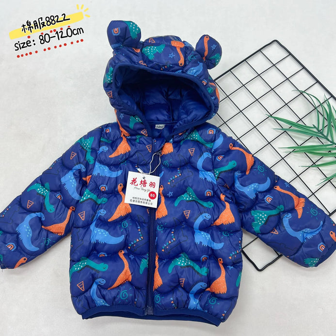 CN Dinos & shapes Print Navy Blue Warm Puffer Jacket 13424