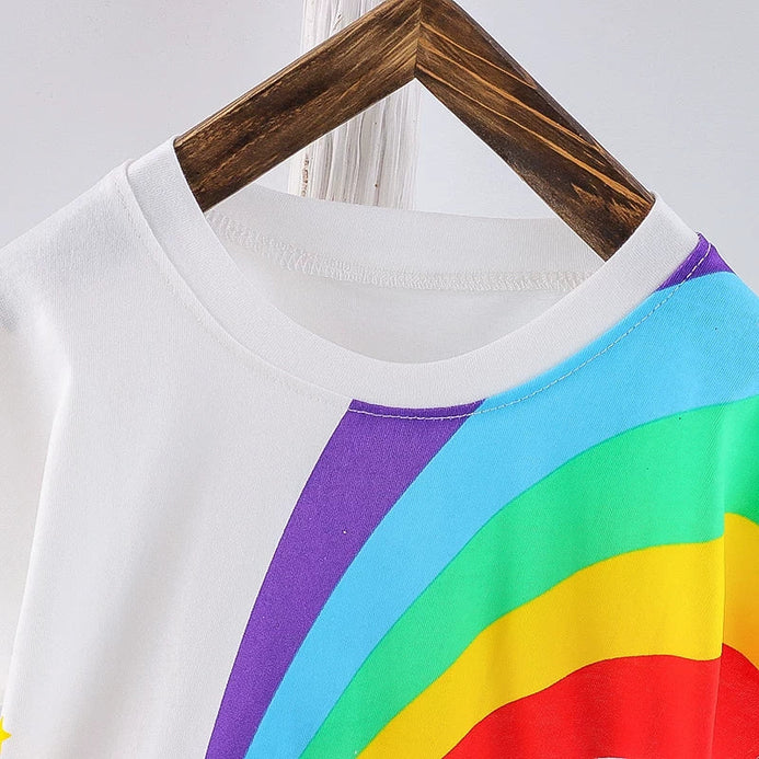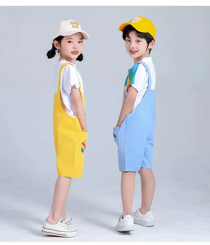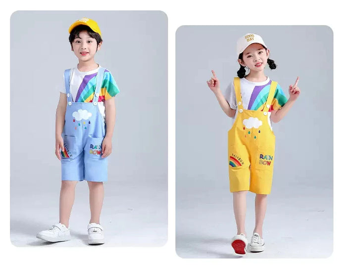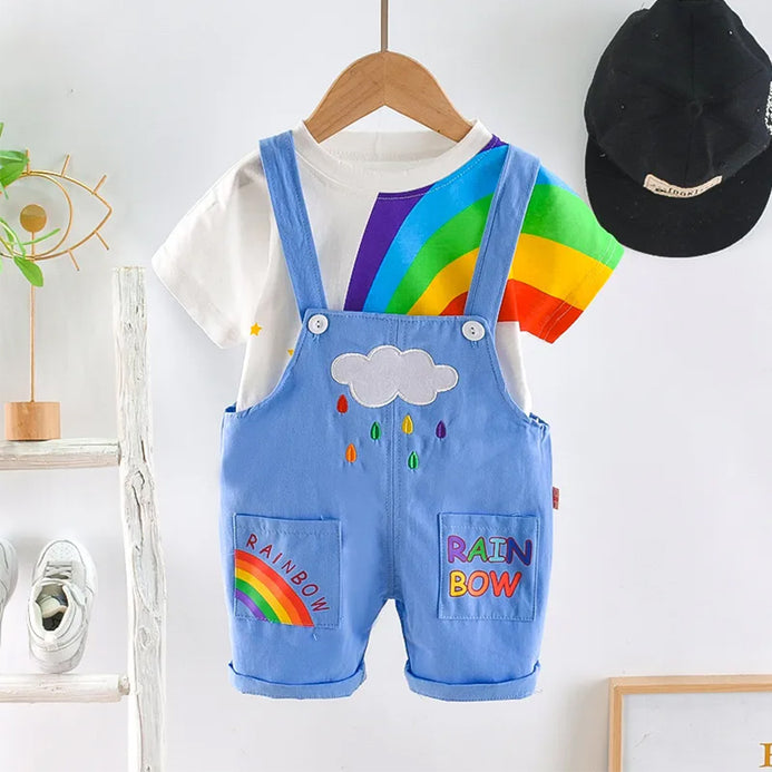 CN Rainbow Print Blue Dungaree With T-Shirt 2 Piece Set 11633