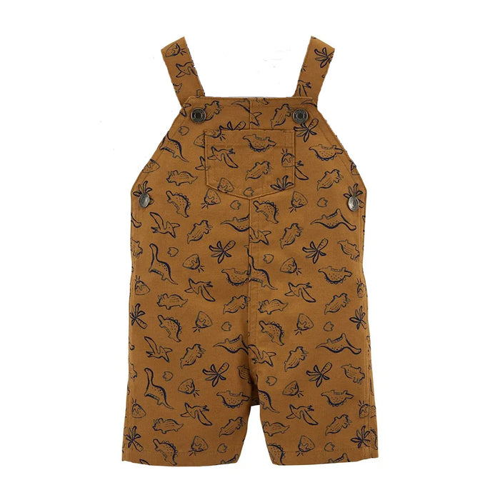 - CRT Art Dinos Print Front Pocket Brown Cotton Dungaree 11551