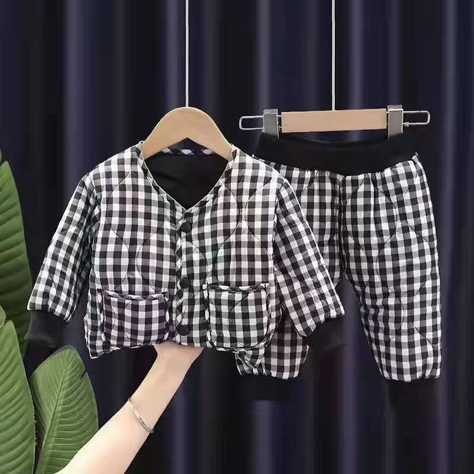 GTLM Box Check Black Quilted 2 Piece Suit Set 10063