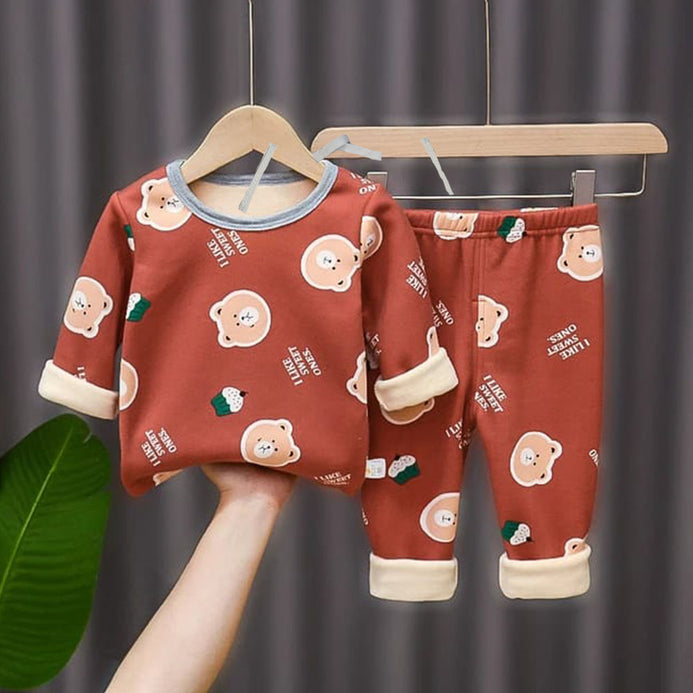 - I Like Sweet Ones Bear Face Print Rust Warm 2 Piece Trouser Set 12310