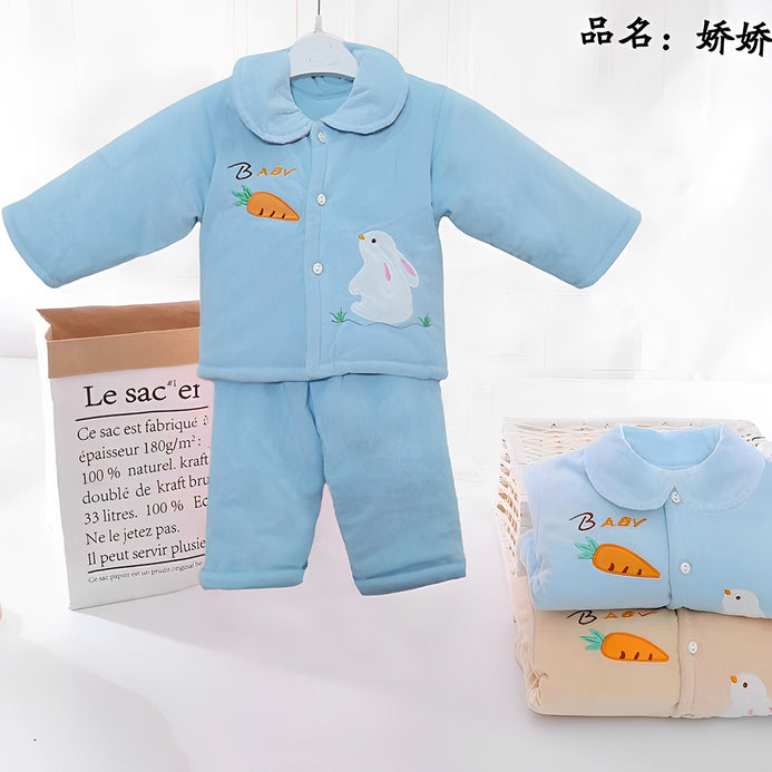 JM Aplic Rabbit & Carrot Warm & Soft Quilted Shirt & Trouser Blue 2 Piece Set 12002