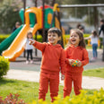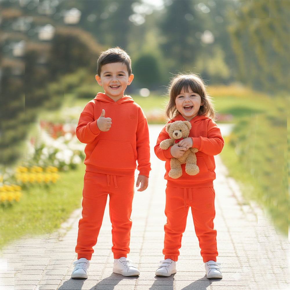 LE LTD Embroided Kangroo Pocket Fleece Hoodie With Trouser Orange Tracksuit 14975