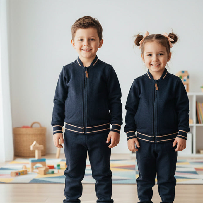 M&M Brown Line Contras Pique Navy Blue Mock Neck Zipper 14589