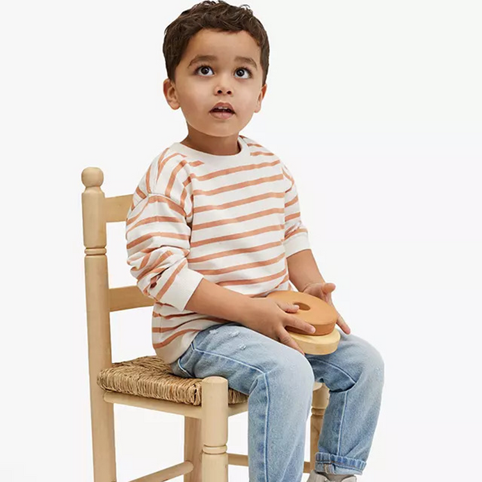 MNG White With Orange Stripes Fleece Sweatshirt 10354