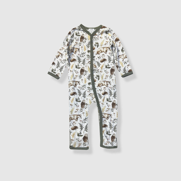 NB Jungle Print Full Sleeves Cream Romper 13729