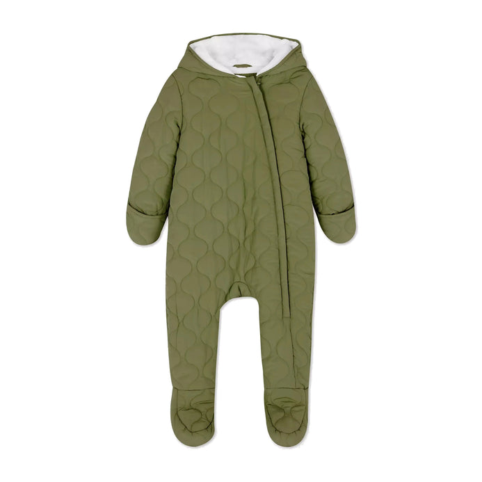 Prepare for extra chilly days, home or away, with this adorable, green quilted pramsuit. The zip-up design makes it simple to fasten plus the covered feet, fold-over hand flaps and fluffy lined hood help to lock in warmth. We love the wavy quilted design and khaki green colour — so stylish! If you're planning on heading somewhere cold with them for the weekend, we're sure you won't want to pass on this sweet style. Over to the stock checker we go!