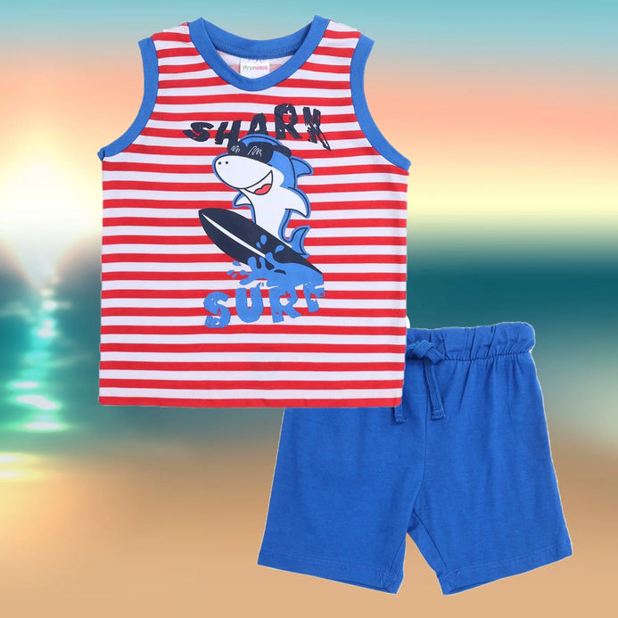 PRNL Shark Surf Red Blue Striped Tank Top with Shorts 2 Pieces Set 13351