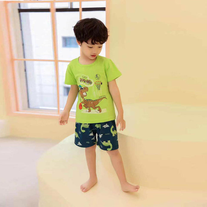 YK Dino Mite Basket Ball Neon Green 2 Piece Shorts Set 4496