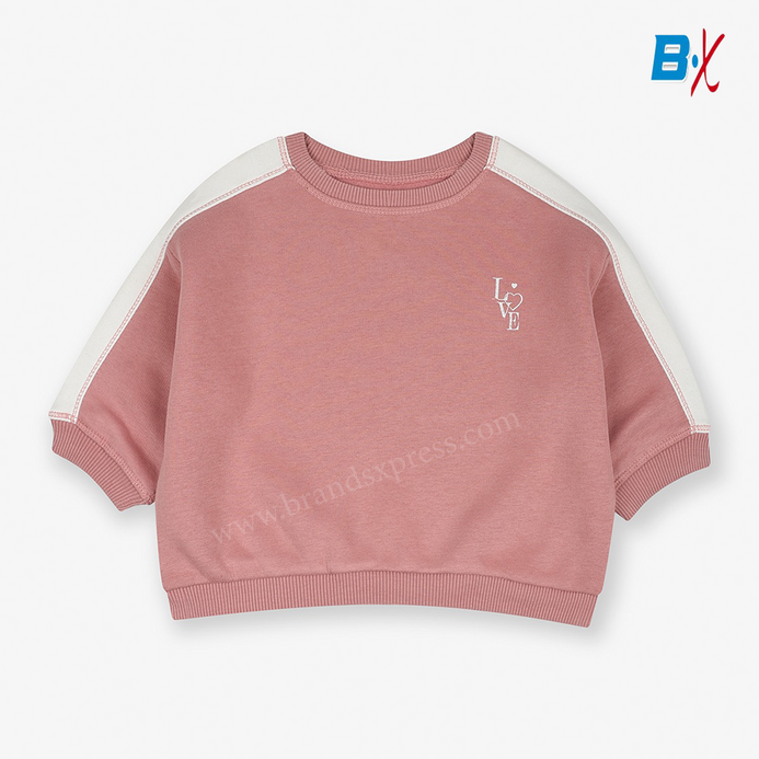 - ZR Shoulder Panel Love Print Loose Short Pink Fleece Sweatshirt 9925