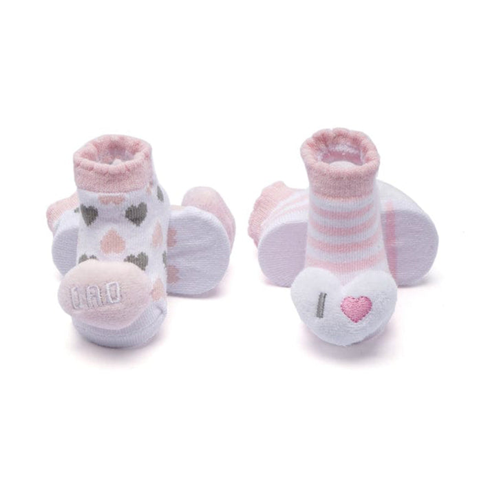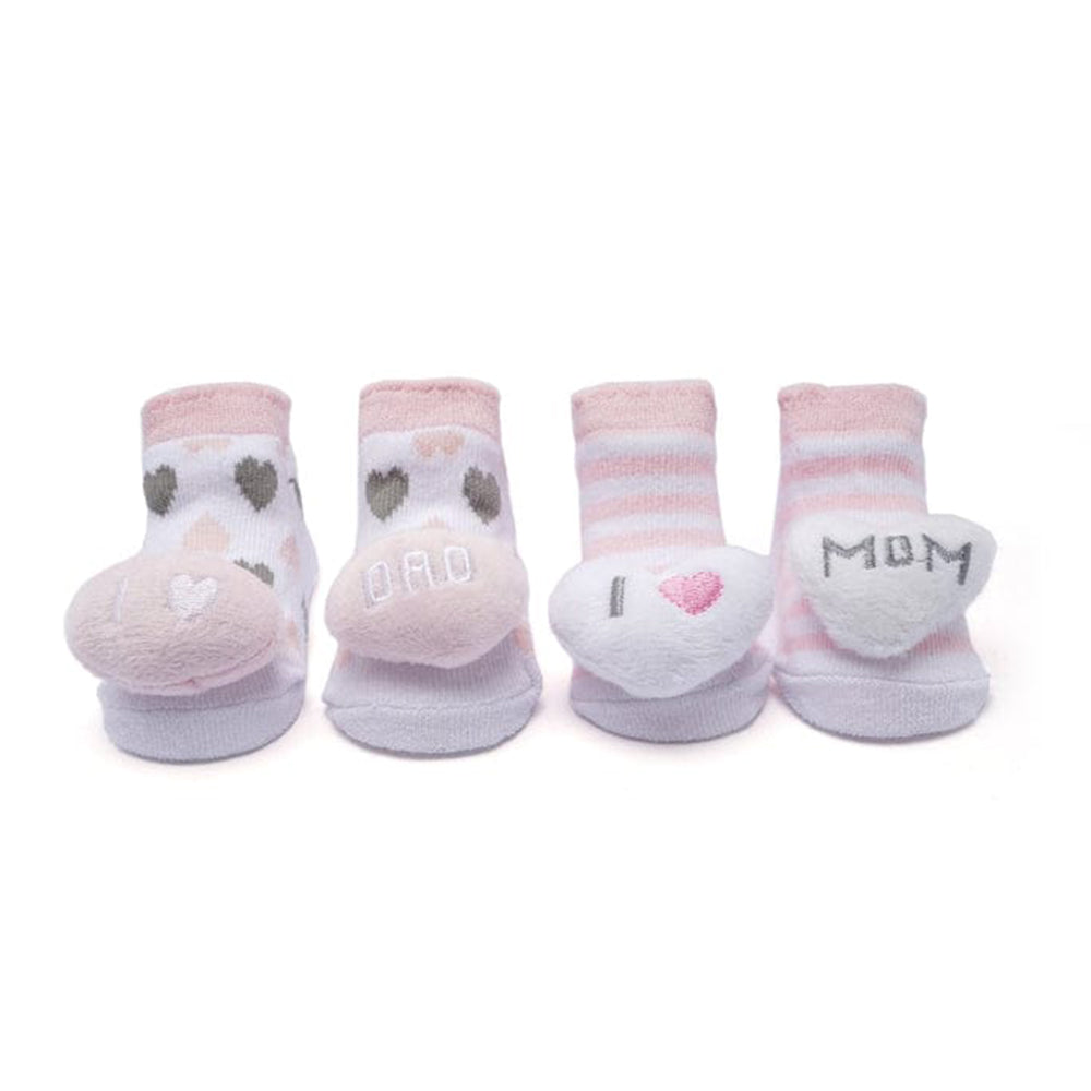 - AFR I Love MOM DAD Pink & White 2 Pairs Rattle Socks Box 12644