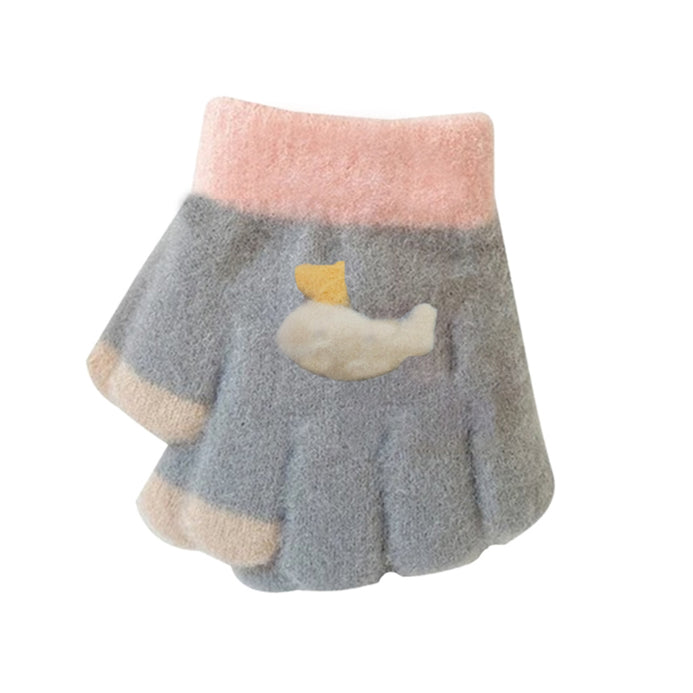 - GGX Rabbit Wool Warm Extra Soft Whale Design Grey Gloves 12547