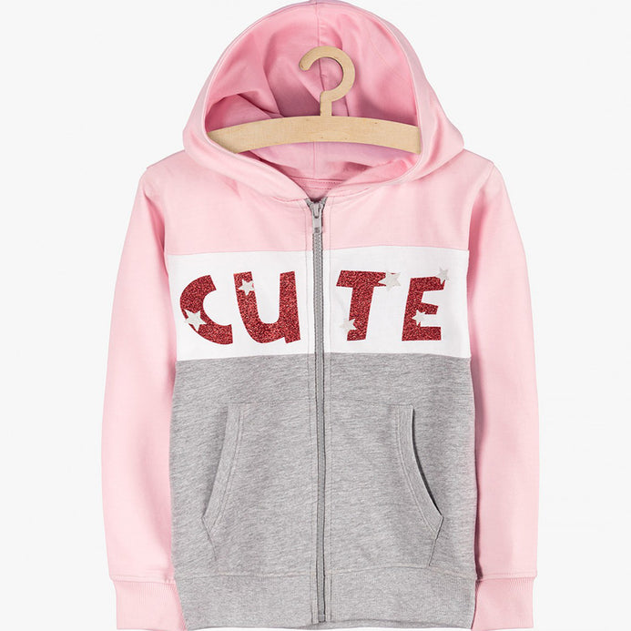 5.10.15 Glitter Cute Pink Color Block Zipper Hoodie 13475
