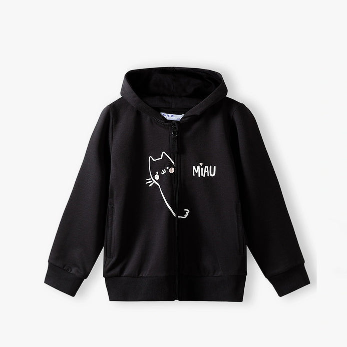 5.10.15 Miau Cat Black Sided Pocket Terry Zipper Hoodie 14569