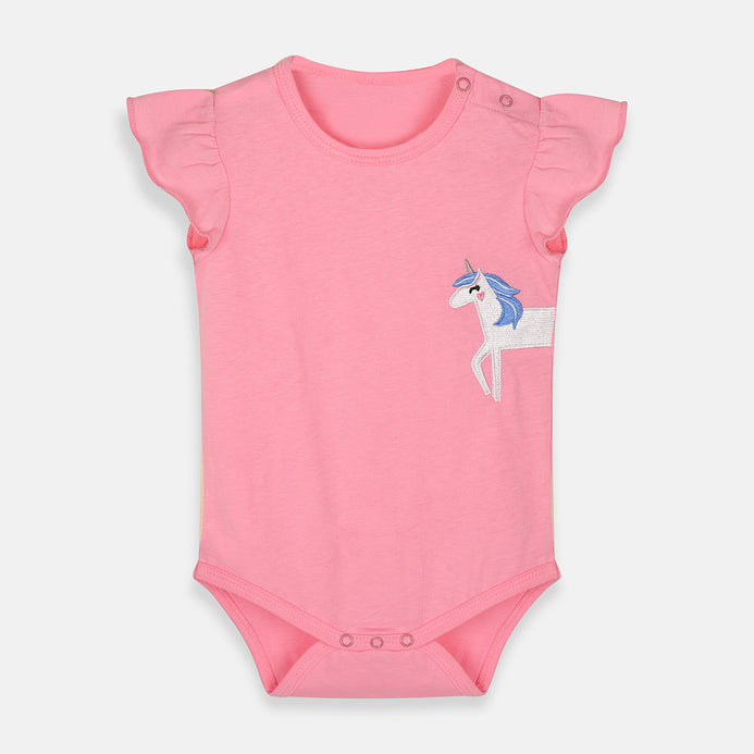 B.X Embroidered Unicorn Pink Body Suit 7485