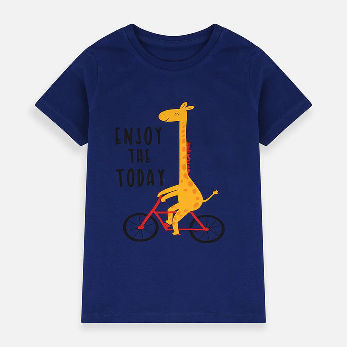B.X Enjoy The Today Giraffe Print Navy Blue Tshirt 5097