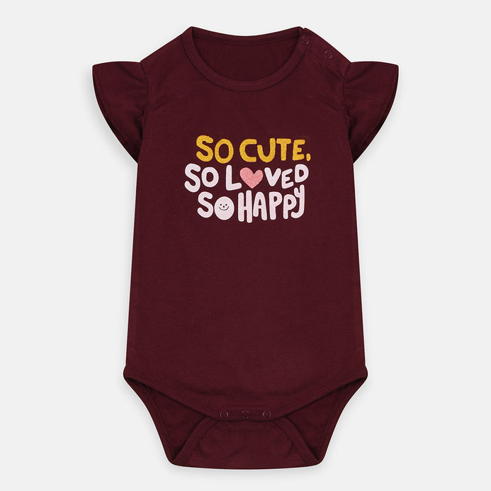 B.X Glitter So Cute Happy Maroon Body Suit 4678