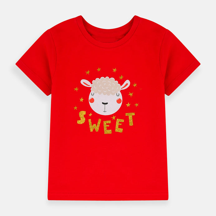 B.X Glitter Sweet Stars Printed Red Tshirt 5090