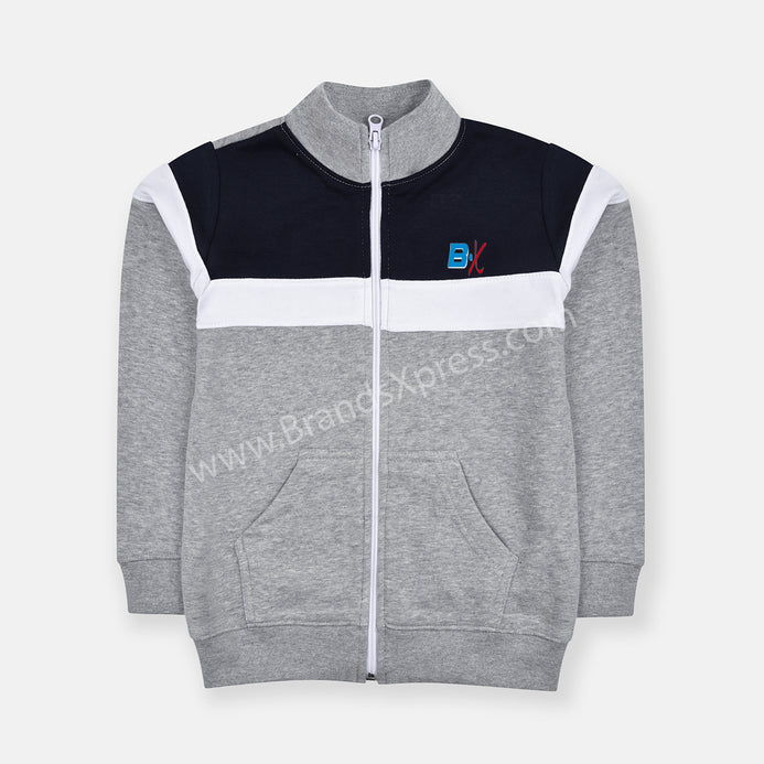 B.X Logo Color Block Dark Blue & Grey Mock Neck Track Suit 9798