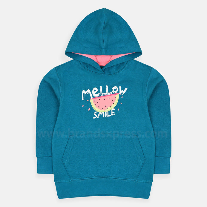 B.X Mellow Smile Print Teal Zipper Hoodie 8265