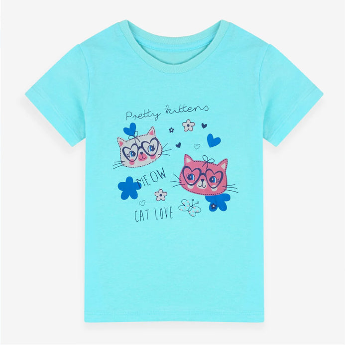 B.X Pretty Kittens Face Print Aqua Blue Tshirt 7351